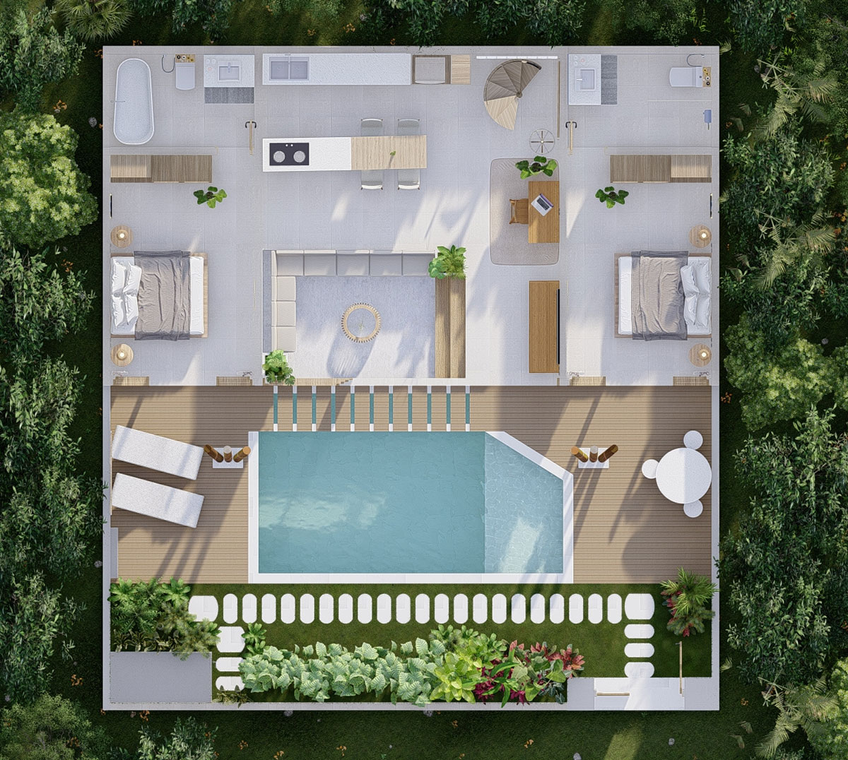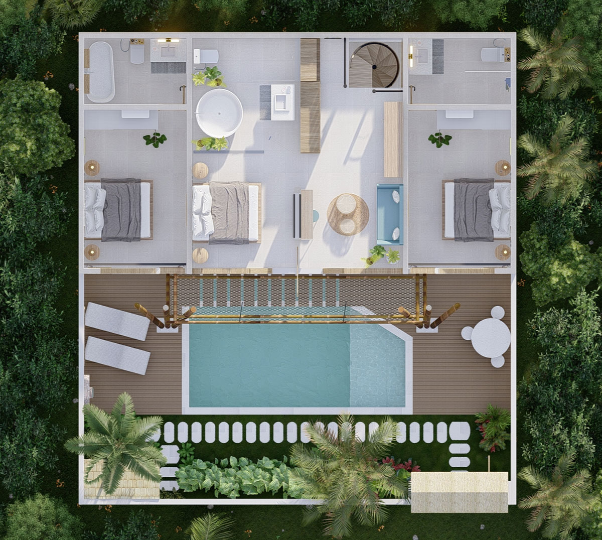 Available in 2 to 3 bedrooms, Villa Melambai is blending timeless island design with modern comfort, this villa features spacious bedrooms, open-air living, and a private pool. The perfect harmony of tropical charm and contemporary ease.