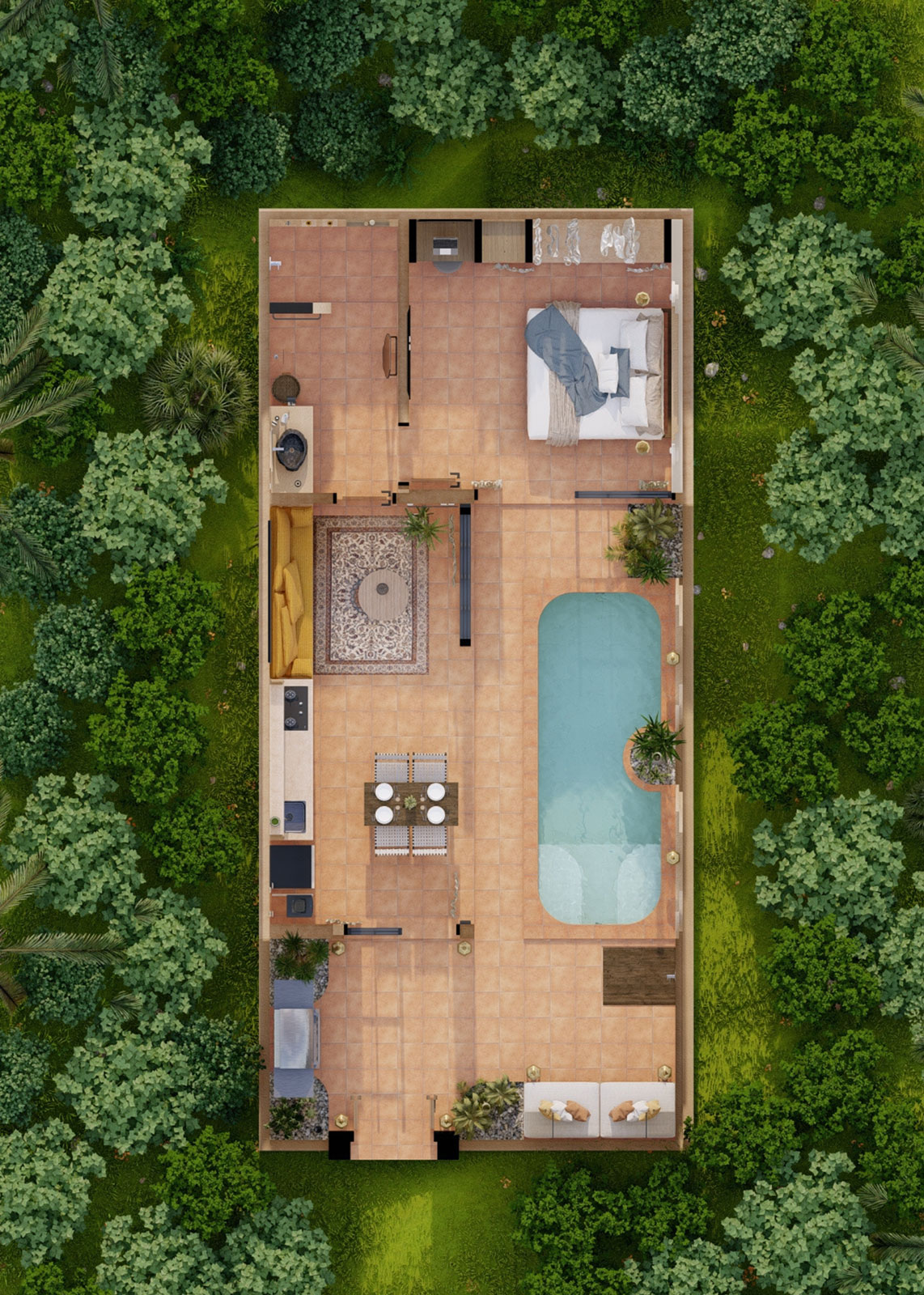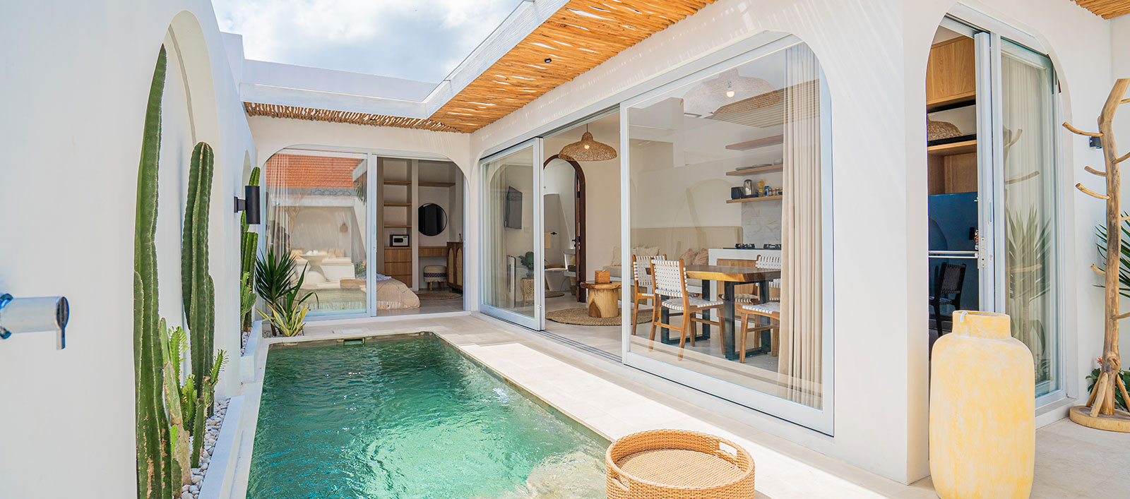 A 1-bedroom sanctuary available in two distinct styles, breezy Mediterranean and warm, exotic Moroccan. Each design showcases graceful arches, artisanal textures, and a harmonious blend of indoor comfort with open-air living.