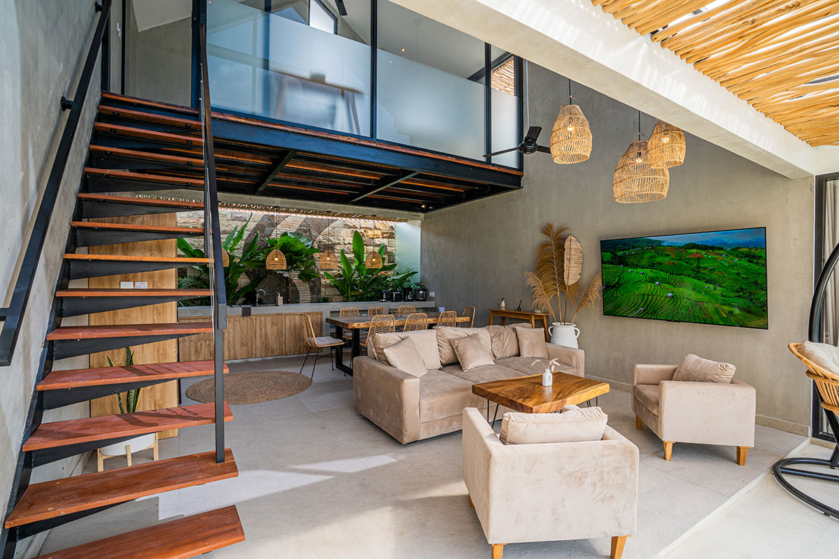 With options from 3 to 5 bedrooms, it adapts easily to your lifestyle, whether you're building a home base in Bali, hosting guests, or launching a high-performing rental. The design is open and effortless: sliding glass doors, double-height ceilings, a generous pool area, and a sunken lounge that invites lazy afternoons and lively evenings.